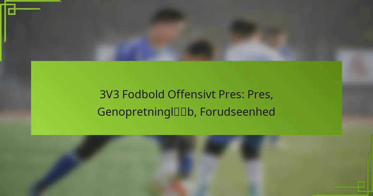 Offensivt pres i 3v3 fodbold refererer til de taktikker, som angribende spillere bruger for at opretholde kontrol over spillet og skabe scoringsmuligheder. Dette involverer strategier som at presse modstanderne, lave genopretningløb og forudse spil for at forstyrre forsvaret og udnytte fejl.